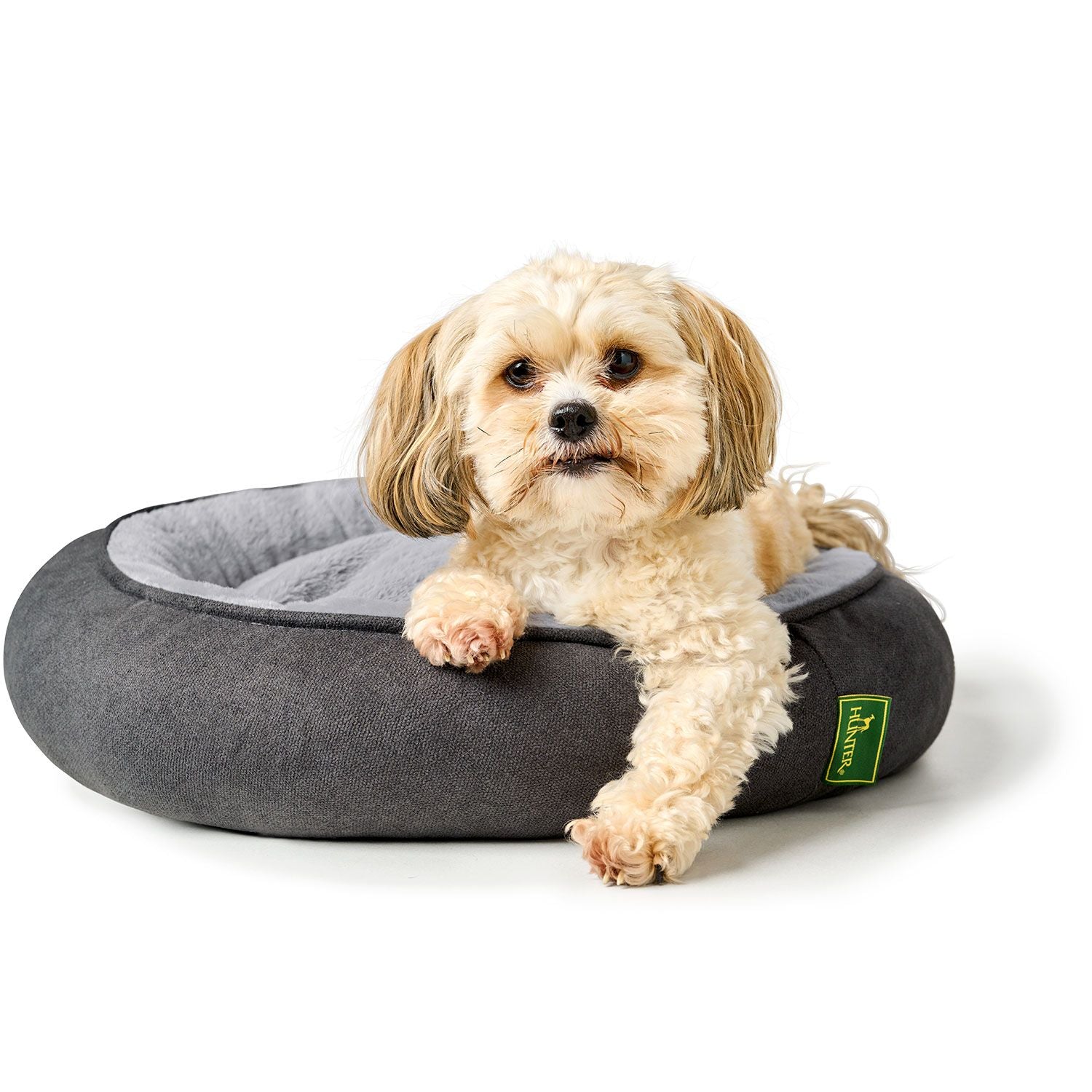 Kis testű kutyák számára a Donut ROCKFORD kerek kutyaágy egy kényelmes fészek, ahol élvezhetik megérdemelt pihenésüket. A donut rendkívül puha plüss borítással rendelkezik, a belső párna azonban kétoldalas, így a strapabíró, texturált oldala is használható fekvőfelületként – ideális a nyári, melegebb időjárásra.